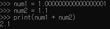 - 파이썬은 실수를 오차 없이 표현하고 저장하지 못한다. 실수에는 약간의 오차가 있다.