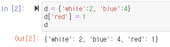 - 딕셔너리에 해당 키가 존재하는 경우, 대입 연산의 결과가 값의 수정으로 이어짐