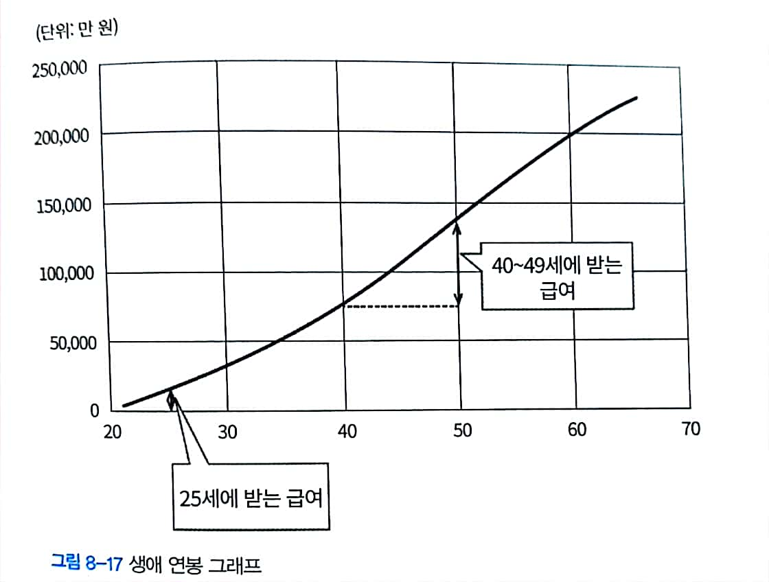 - 25세까지 얼마의 금액을 받을 수 있을까? / 40대가 되면 얼마나 받을 수 있을까? 에 대한 답을 아래 그래프에서