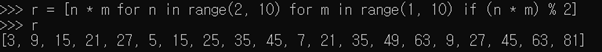 - 다음과 같은 리스트도 리스트 컴프리헨션을 이용하여 간단히 불러낼 수 있음
