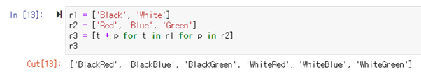 - for t in r1 for p in r2 : 모든 t와 p의 조합을 생성