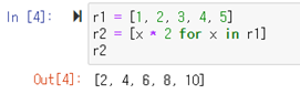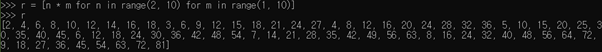 - 즉, r2 = [x * 2 for x in r1] : r1의 값들을 하나씩 x에 넣어서, x * 2의 결과를 만들어 리스트에 저장하겠음