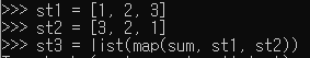 - st1과 st2에 있는 값들을 각각 더해서 다음 형태의 리스트를 만들고자 할 때