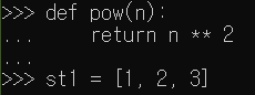 - 위에서 정의한 pow 함수와 st1이 참조하는 리스트를 이용해서