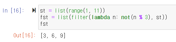 - range 객체도 iterable 객체이므로 filter의 두 번째 인자가 될 수 있음