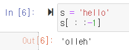 - 슬라이싱 연산을 문자열을 뒤집는데도 사용할 수 있음