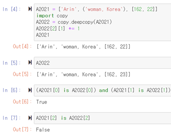 - 따라서 immutable 함수는 얕은 복사로, mutable 함수는 copy 모듈의 deepcopy를 사용하여 깊은 복사를 해야 함