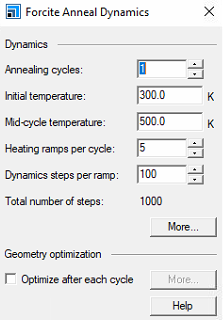 - Aneal은 앞서 언급했듯이, 온도를 높였다 낮췄다를 반복하면서 (사인 그래프 형식) 안정화된 구조를 찾는 계산